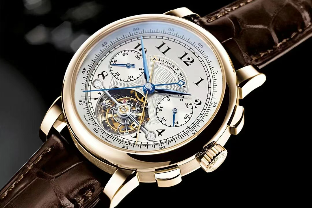 2.圆拱形黑色、蓝色及香槟色表盘,6点钟位置设有月相功能
