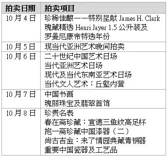 将于10月4日,即香港蘇富比2014年秋季拍卖会首天举行;而第二场「